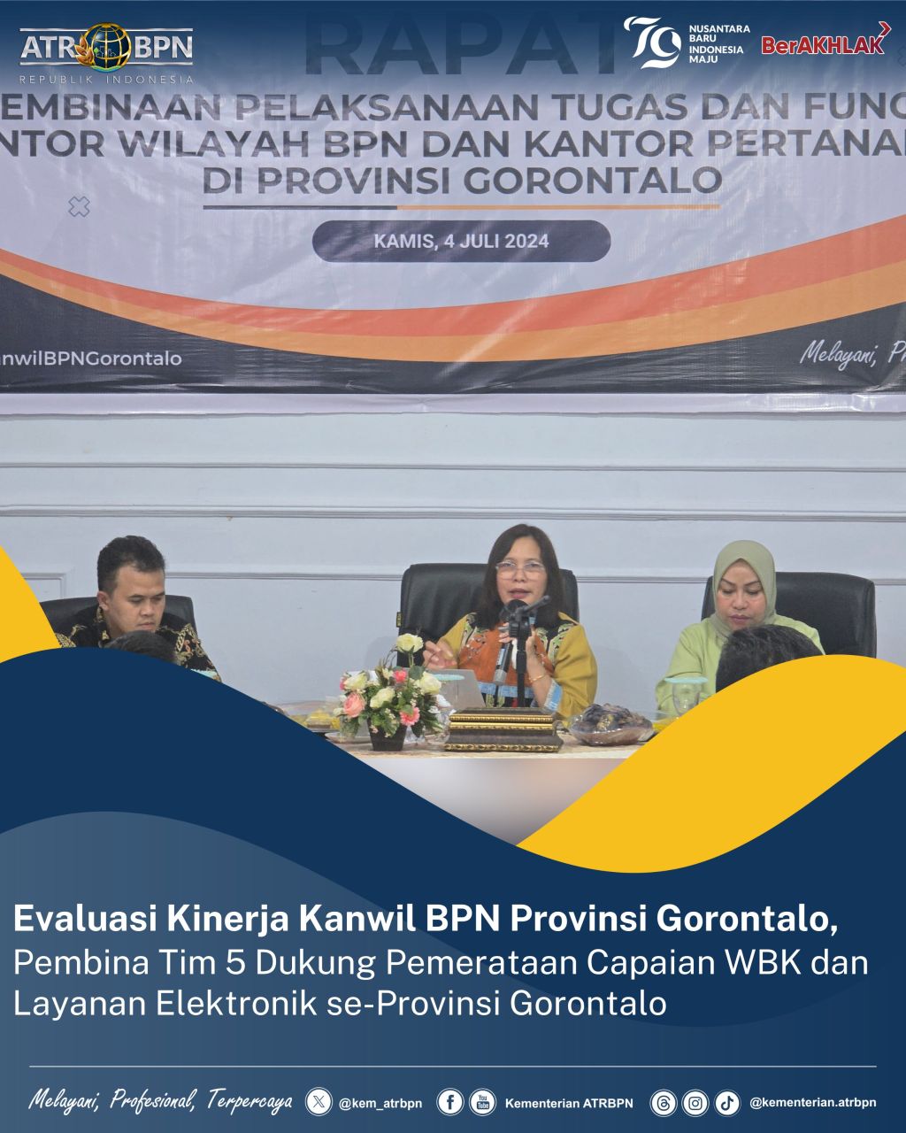 Gorontalo – Kementerian Agraria dan Tata Ruang/Badan Pertanahan Nasional (ATR/BPN) menyelenggarakan kegiatan Evaluasi dan Pembinaan terhadap Kantor Wilayah (Kanwil) BPN Provinsi Gorontalo, pada Kamis (04/07/2024). Evaluasi dilakukan terkait program-program strategis Kementerian ATR/BPN di Provinsi Gorontalo.