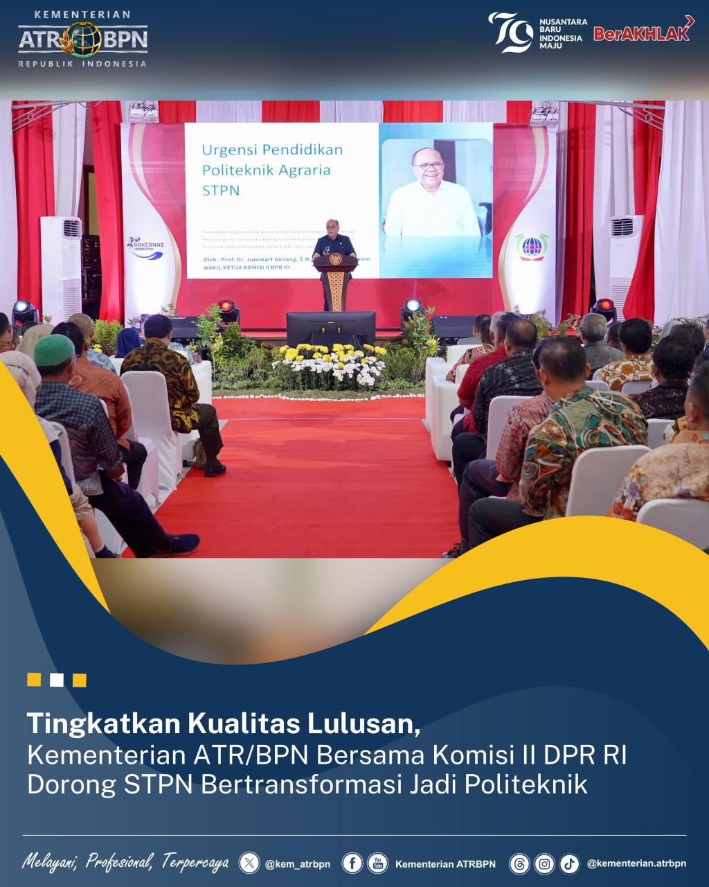 Dengan status sebagai politeknik, Menteri AHY menilai STPN akan mampu menawarkan program pendidikan yang lebih aplikatif serta terfokus pada pengembangan keterampilan teknis dan vokasional. “Untuk menyongsong Indonesia Emas tahun 2045, STPN mempunyai peran penting dalam mewujudkan kualitas lulusan yang memiliki kompetensi intelektual, profesional, berwawasan kebangsaan, dan berkarakter,” tegasnya.