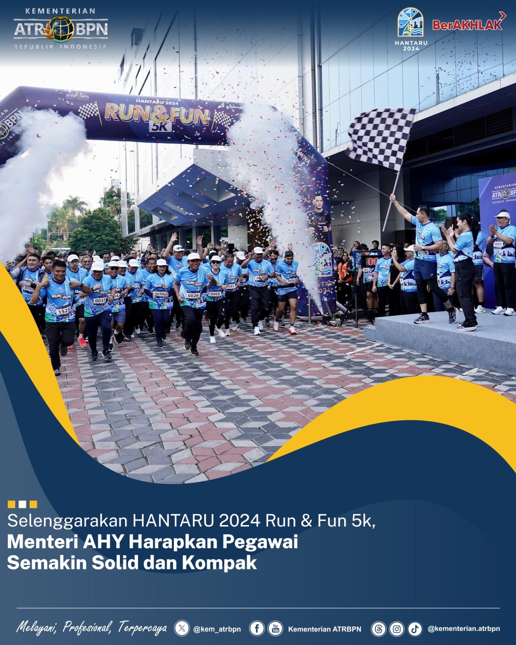 Menteri AHY berharap HANTARU 2024 Run & Fun 5k menjadi bagian dari membangun solidaritas antar pegawai, sehingga kerja-kerja di lapangan menjadi semakin baik.