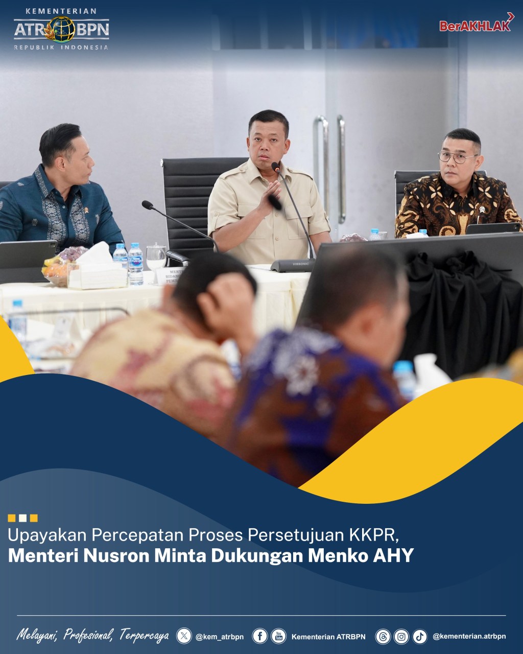 Jakarta – Menteri Agraria dan Tata Ruang/Kepala Badan Pertanahan Nasional (ATR/BPN), Nusron Wahid minta dukungan Menteri Koordinator Bidang Infrastruktur dan Pembangunan Kewilayahan, Agus Harimurti Yudhoyono (Menko AHY) dalam urusan tata ruang, yaitu Kesesuaian Kegiatan Pemanfaatan Ruang (KKPR). Ia ingin mendorong agar proses Persetujuan KKPR menjadi lebih cepat ke depannya.