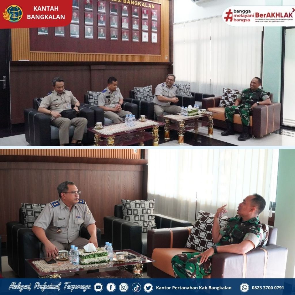 Silaturahmi dan Koordinasi Kepala Kantor Pertanahan Kabupaten Bangkalan Bapak Muhammad Arifin Siregar, S.T., M.E. Kepada Komandan Distrik Militer 0829 Bangkalan Letkol Inf. Nanang Fahrur Rozi, S.Pd.