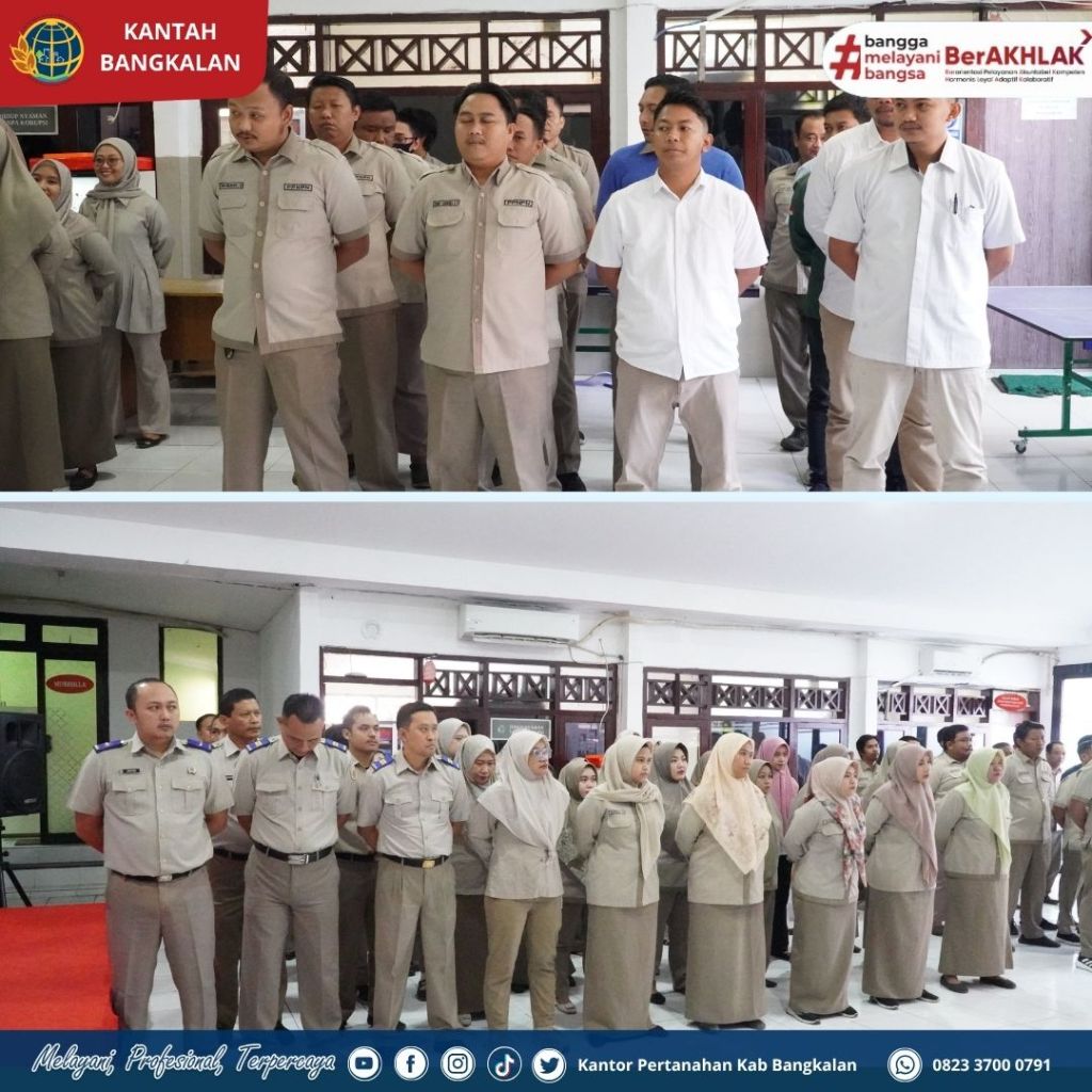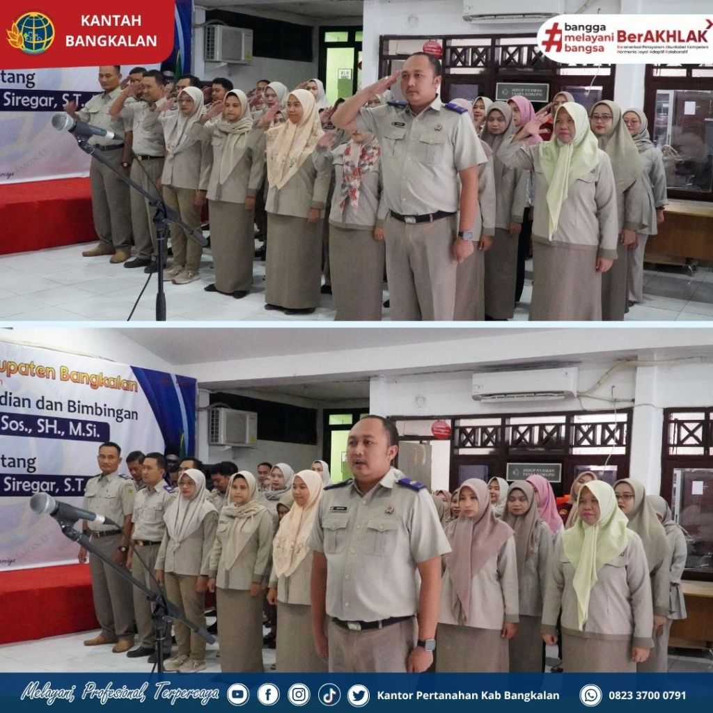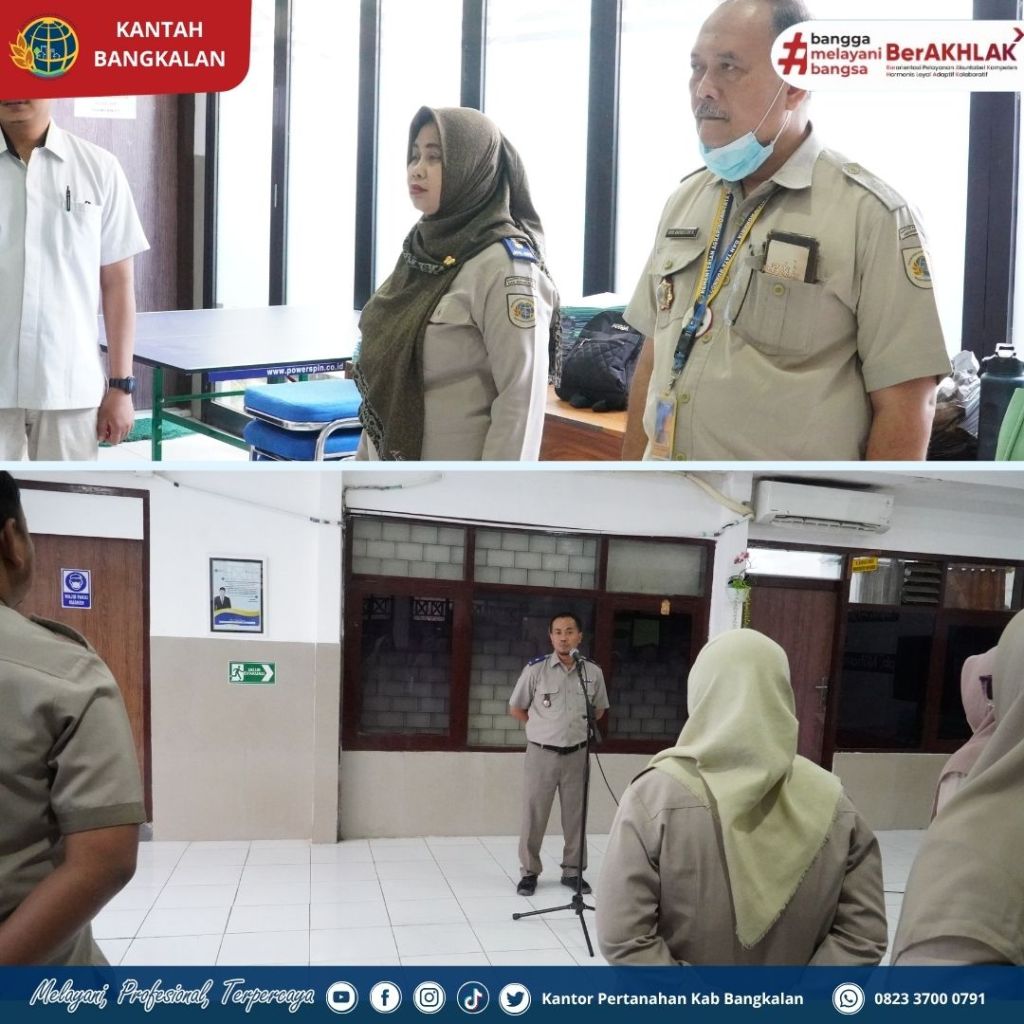 Mengawali hari kerja dengan pelaksanaan apel pagi merupakan wujud kedisiplinan, tanggung jawab, dan semangat kebersamaan seluruh jajaran Kantor Pertanahan Kabupaten Bangkalan.