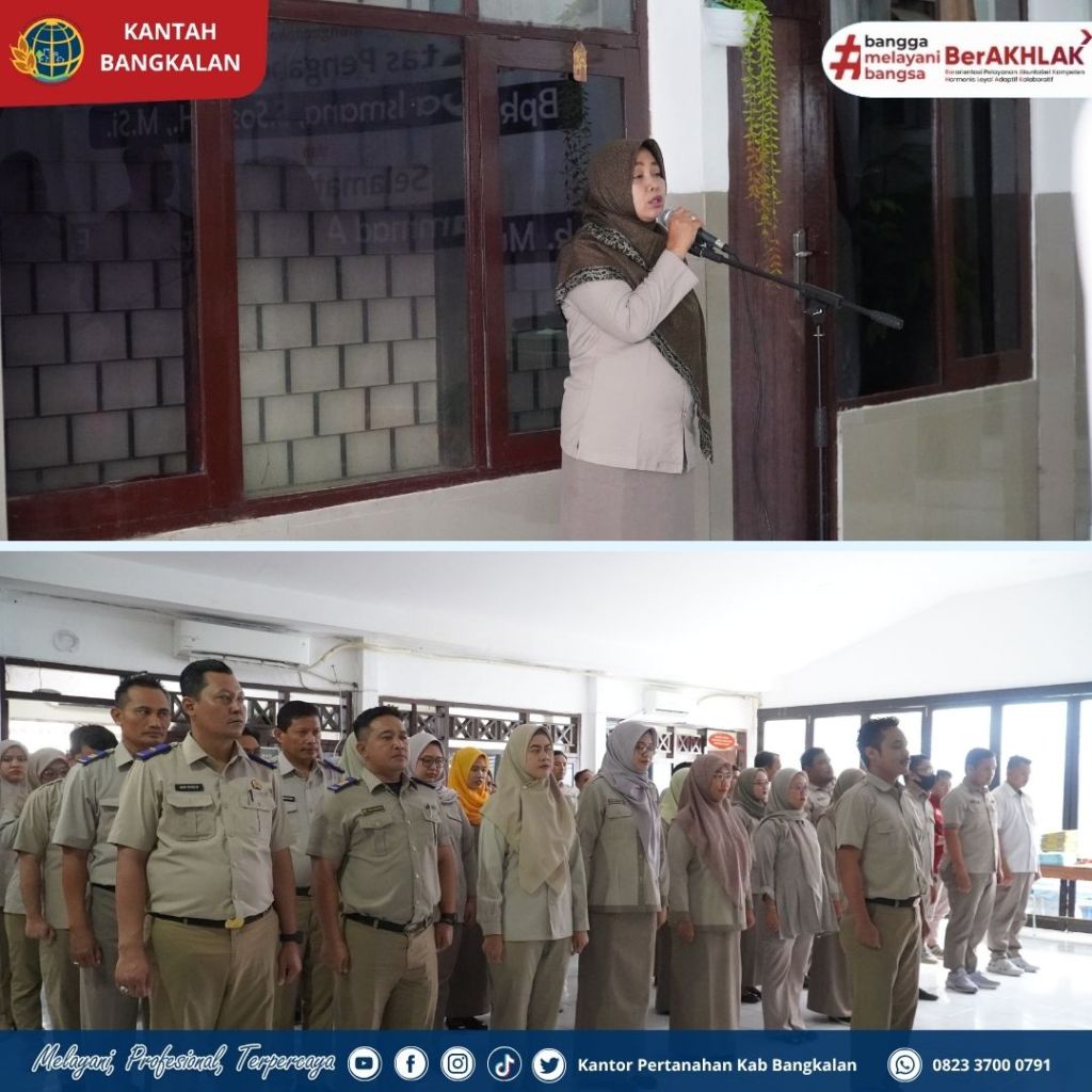 Kantor Pertanahan kabupaten Bangkalan beserta staf melakukan kegiatan apel pagi yang dipimpin oleh Kepala Seksi Penataan dan Pemberdayaan Ibu Fatma Junailisa, S.Sos., M.H