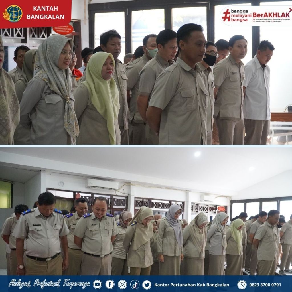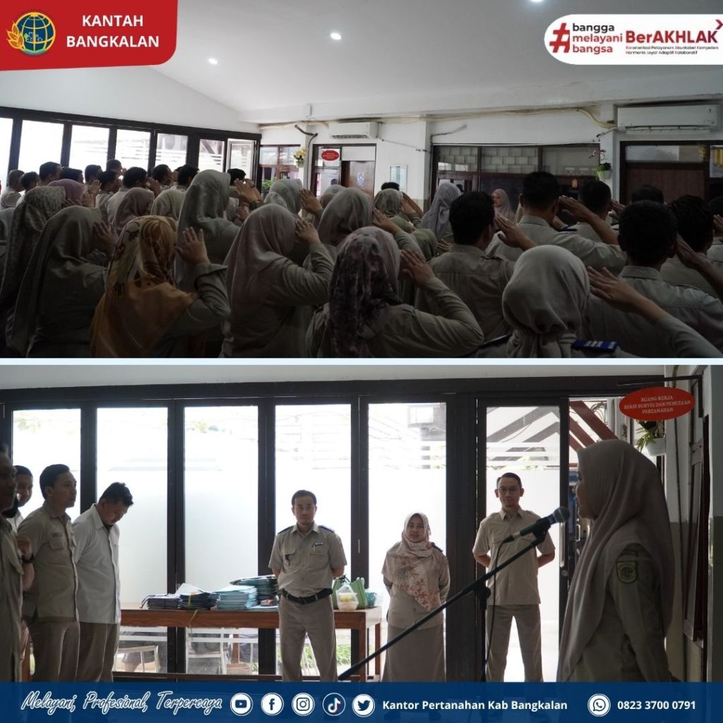 Apel pagi Kantor Pertanahan Kabupaten Bangkalan hari ini menjadi momen penyemangat bagi seluruh pegawai. Dengan komitmen dan semangat kerja yang tinggi, kita siap memberikan pelayanan terbaik untuk masyarakat.