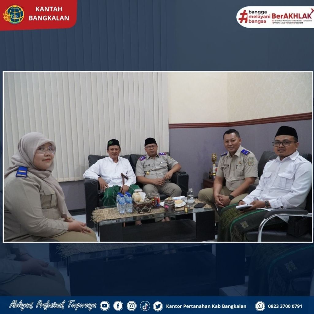 Kepala Kantor Pertanahan Kabupaten Bangkalan Bapak Muhammad Arifin Siregar, S.T., M.E. menerima Silaturahmi dan Koordinasi dari ketua Pimpinan Cabang Nahdlatul Ulama(PCNU) Kabupaten Bangkalan KH. Muhammad Makki Nasir di Kantor Pertanahan Kabupaten Bangkalan