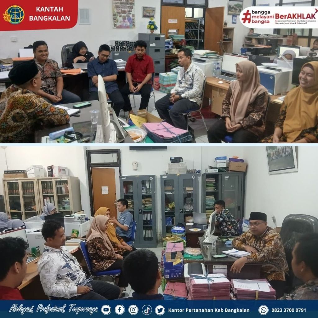 Bangkalan — Kepala Kantor Pertanahan Kabupaten Bangkalan Bapak Muhammad Arifin Siregar, S.T., M.E. melaksanakan koordinasi dan evaluasi terkait pelaksanaan pelayanan pertanahan. Kegiatan ini merupakan upaya untuk memastikan layanan publik berjalan efektif, efisien, dan sesuai standar yang ditetapkan.