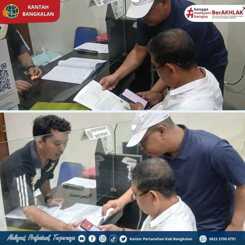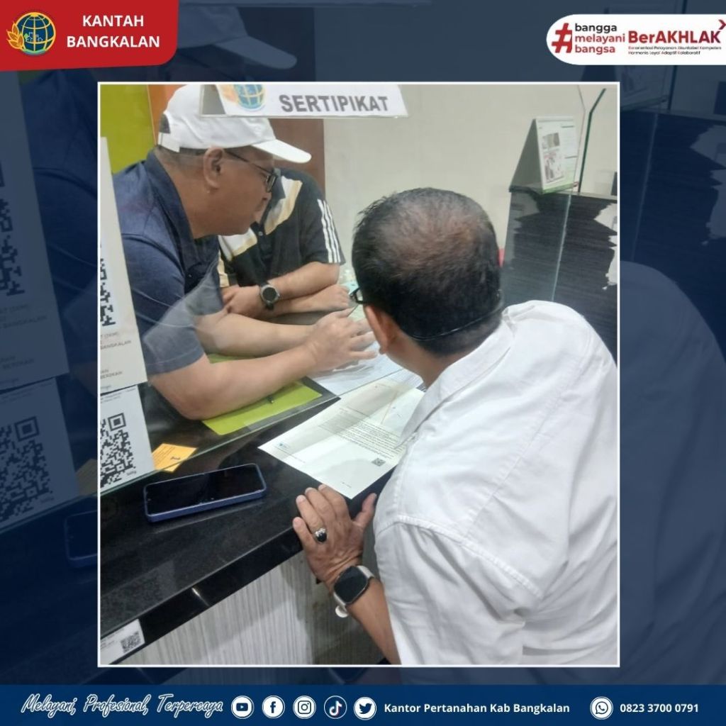 Kepala Kantor Pertanahan Kabupaten Bangkalan Bapak Muhammad Arifin Siregar, S.T., M.E. hari ini berkesempatan menyaksikan secara langsung penyerahan Sertifikat Elektronik (Sertel) kepada salah satu pemohon. Kegiatan ini juga dirangkaikan dengan sosialisasi aplikasi Sentuh Tanahku, sebuah inovasi layanan digital dari Kementerian ATR/BPN yang memudahkan masyarakat untuk mengakses informasi pertanahan secara cepat, mudah, dan aman melalui smartphone.