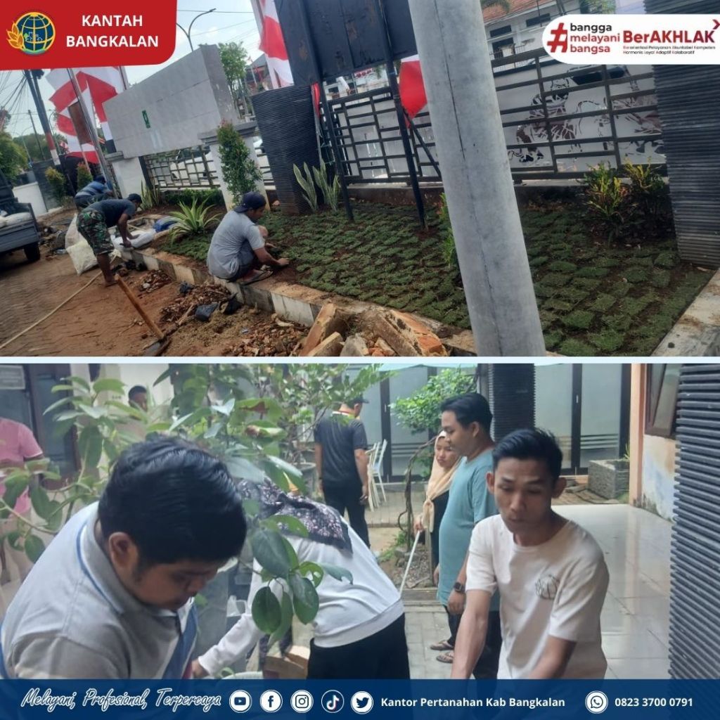 Selain kerja bhakti juga di lakukan pemasangan atribut kemerdekaan untuk memeriahkan HUT RI ke 80 dan penanaman tanaman untuk taman di halaman Kantor Pertanahan Kabupaten Bangkalan