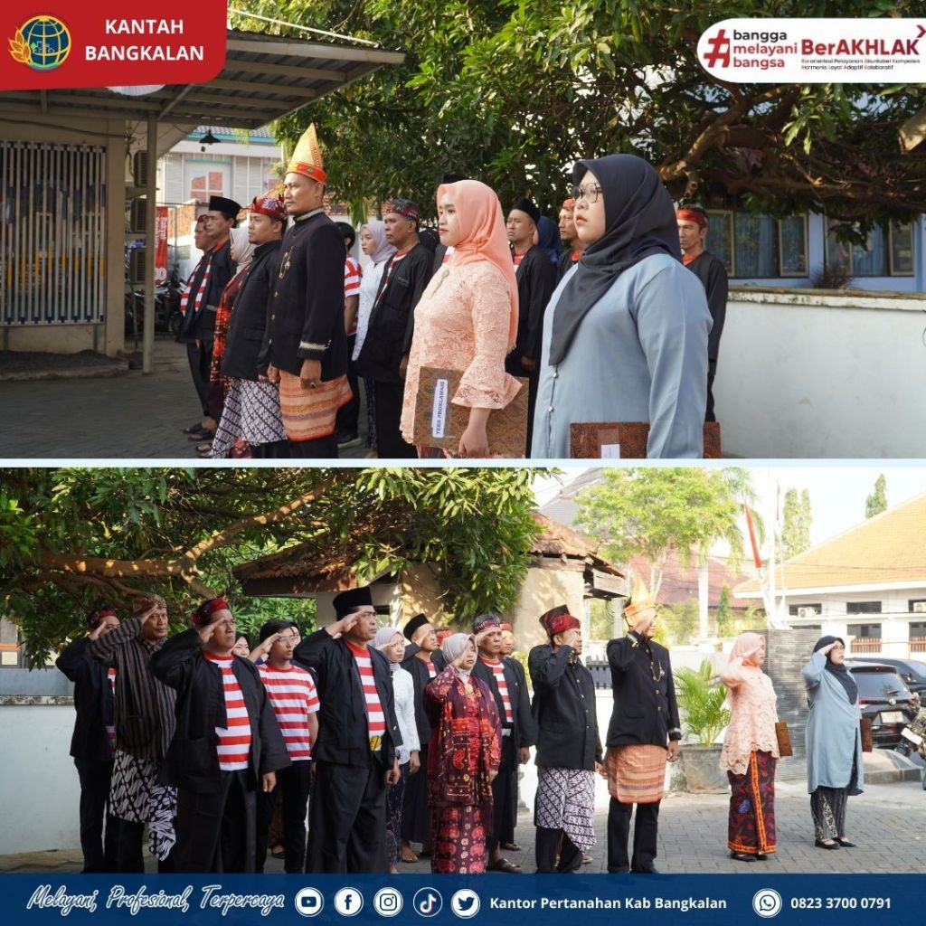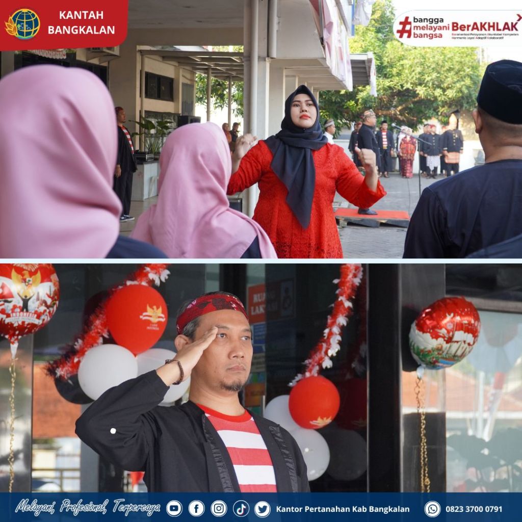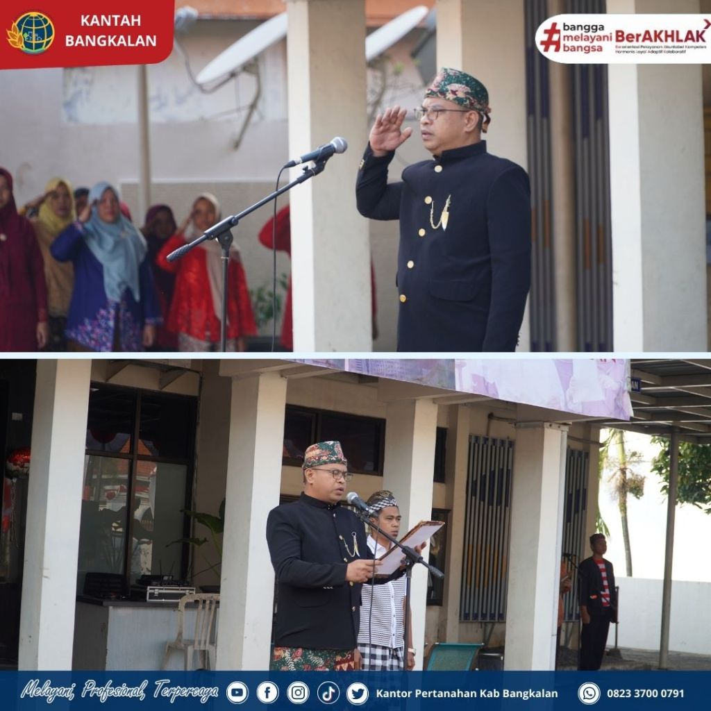Dengan penuh khidmat, jajaran pegawai Kantor Pertanahan Bangkalan mengikuti jalannya upacara sebagai wujud penghormatan atas jasa para pahlawan serta semangat menjaga persatuan dan mengisi kemerdekaan dengan karya nyata.
