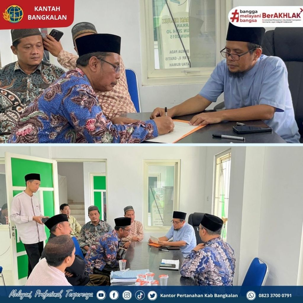 Kecamatan Arosbaya – Tim percepatan sertipikasi tanah wakaf Kantor Pertanahan Kabupaten Bangkalan menggelar kegiatan Rally/Fastabiqul Khairat Penandatanganan Akta Ikrar Wakaf (AIW) Massal di Kantor Urusan Agama Kecamatan Arosbaya, pada 02 September 2025.