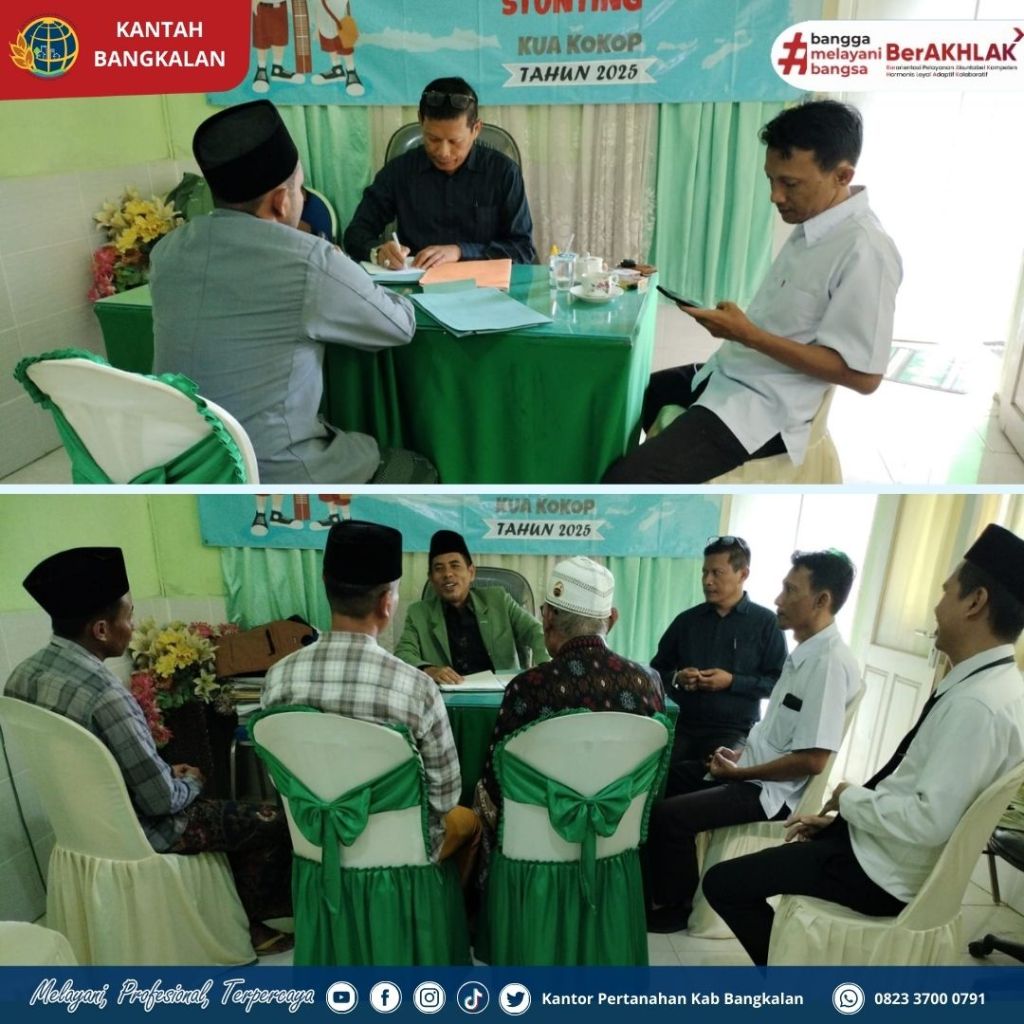 Kecamatan Kokop – Tim Percepatan Sertipikasi Tanah Wakaf Kantor Pertanahan Kabupaten Bangkalan menggelar kegiatan Sosialisasi dan Percepatan Penandatanangan Akta Ikrar Wakaf di Kantor Urusan Agama Kecamatan Kokop yang dihadiri oleh para wakif (pemberi wakaf) dan nadzir (pengelola wakaf), pada 03 September 2025.