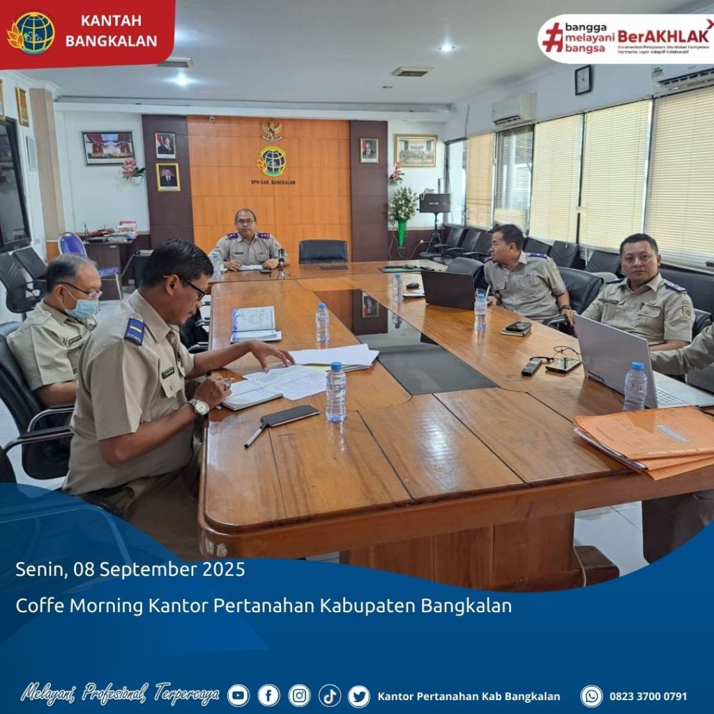 Kepala Kantor Pertanahan Kabupaten Bangkalan Bapak Muhammad Arifin Siregar, S.T., M.E. memimpin Coffe Morning atau rapat internal dalam memberikan pelayanan terbaik bagi masyarakat.