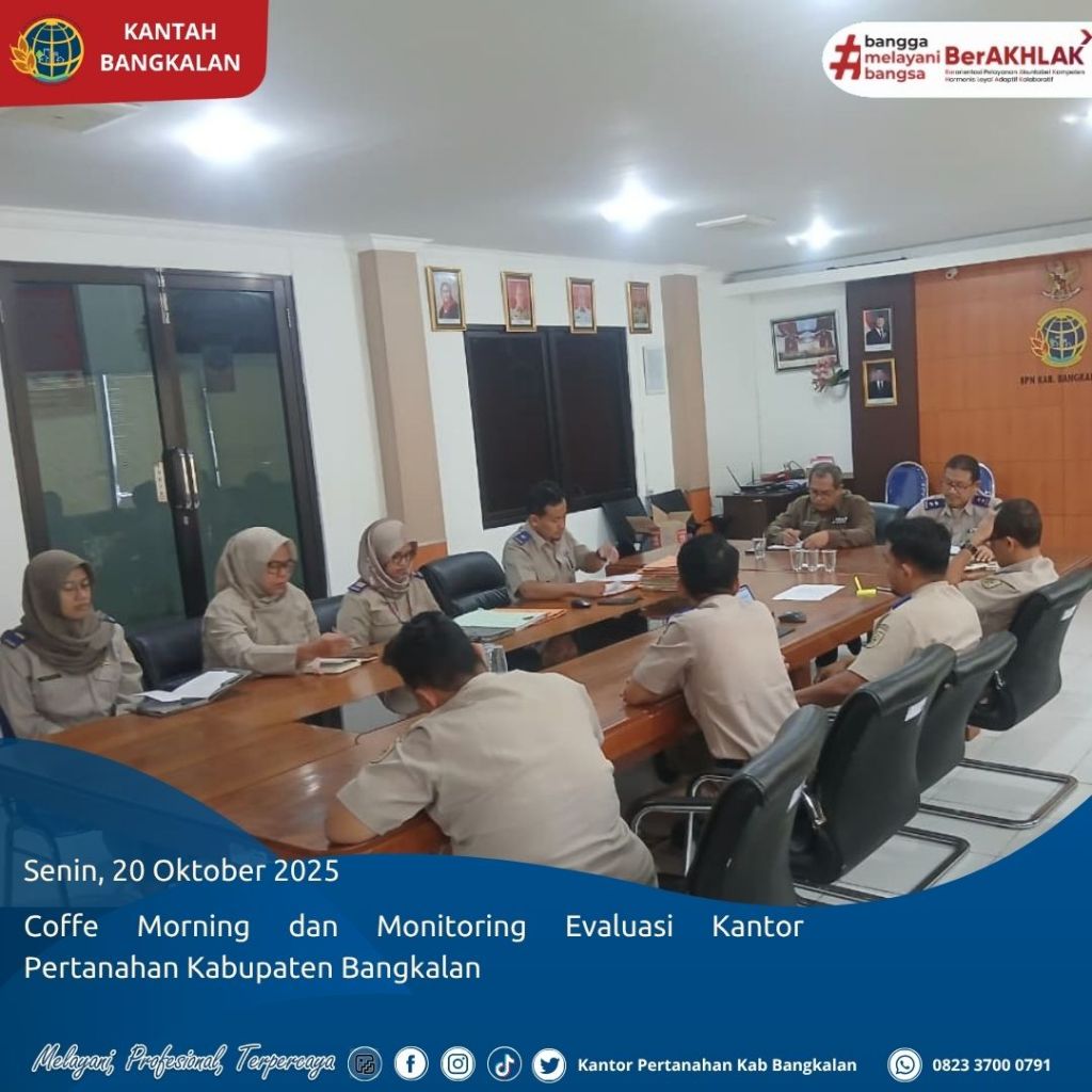 Kepala Kantor Pertanahan Kabupaten Bangkalan Bapak Muhammad Arifin Siregar, S.T., M.E. memimpin Coffe Morning atau rapat internal dalam memberikan pelayanan terbaik bagi masyarakat.