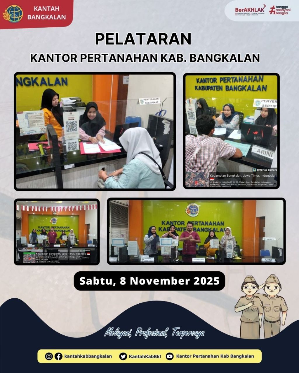Kantor Pertanahan Kabupaten Bangkalan hadir lebih dekat dengan masyarakat melalui kegiatan Pelataran, layanan pertanahan yang dibuka di akhir pekan untuk memberikan kemudahan dan mempercepat pelayanan.