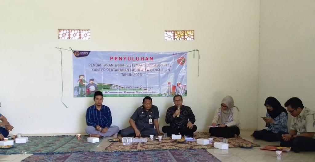 Kepala Kantor Pertanahan Kabupaten Bangkalan Muhammad Arifin Siregar, S.T., M.E., bersama jajaran melaksanakan kegiatan Penyuluhan Pendaftaran Tanah Sistematis Lengkap (PTSL) Integrated Land Administration and Spatial Planning Project (ILASPP) Tahun Anggaran 2026 di Desa Bungkeng, Kecamatan Tanjung Bumi, Kamis (23/4).